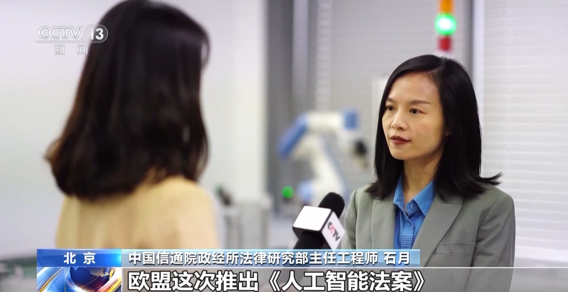 中國(guó)信通院政經(jīng)所法律研究部主任工程師 石月:歐盟推出《人工智能法案》,很有可能成為全球首部高層級(jí)的關(guān)于人工智能的法律框架。希望在人工智能領(lǐng)域繼續(xù)維護(hù)它本土的數(shù)字主權(quán)、數(shù)字安全,提升在人工智能規(guī)則制定的國(guó)際話語(yǔ)權(quán)。