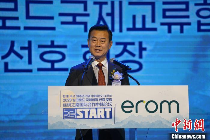 圖為韓中絲綢之路國(guó)際交流協(xié)會(huì)會(huì)長(zhǎng)李先虎致辭。中新社記者 劉旭 攝