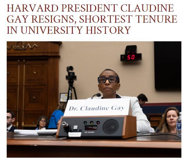 2023年12月13日,美國國會眾議院以303票對126票通過一項兩黨決議,要求哈佛大學校長蓋伊辭職。