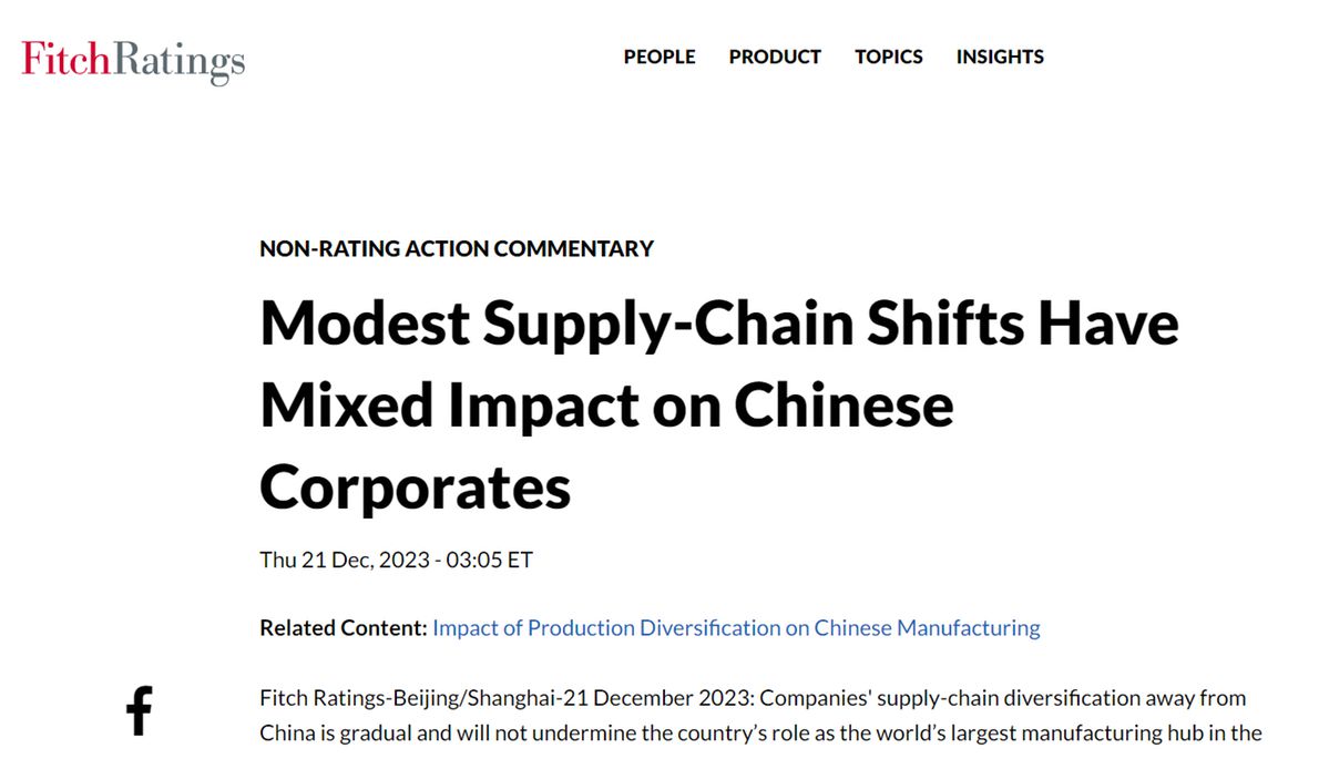 《華爾街日?qǐng)?bào)》的觀察與惠譽(yù)評(píng)級(jí)公司最近的一份報(bào)告相呼應(yīng)。該報(bào)告稱,在貿(mào)易壁壘和地緣政治緊張局勢(shì)加劇背景下,全球性企業(yè)和中資企業(yè)都在推進(jìn)供應(yīng)鏈多元化。不過(guò),產(chǎn)能外遷規(guī)模仍然有限,且集中在低技能的組裝和量產(chǎn)領(lǐng)域,如紡織、服裝和鞋類。