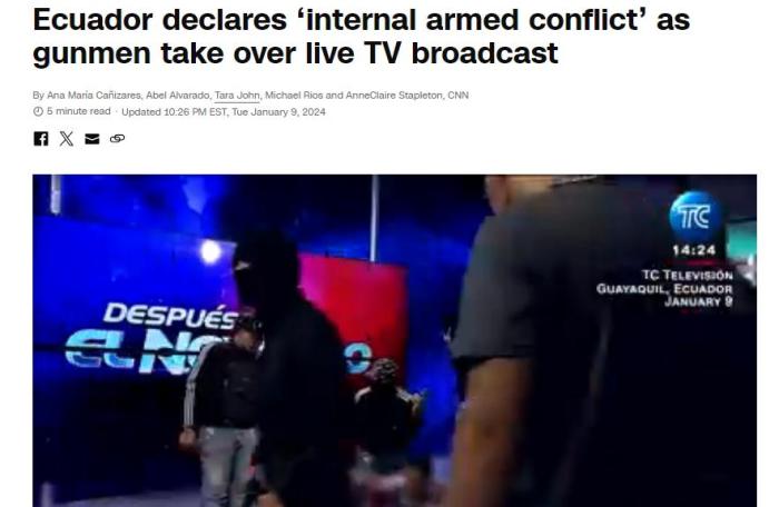 據(jù)美國有線電視新聞網(wǎng)(CNN)報(bào)道,該法令發(fā)布前不久,一伙武裝人員闖入厄瓜多爾西南部瓜亞基爾市一家電視臺,并挾持電視臺工作人員。