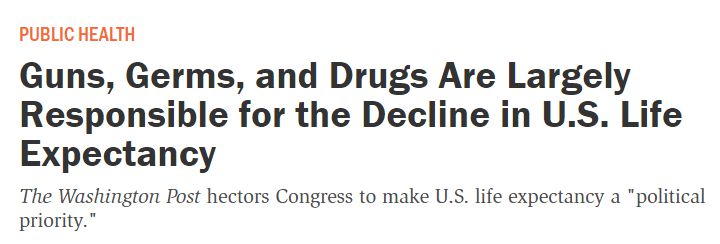 《華盛頓郵報》認為,國會民主黨人和共和黨人之間的爭斗阻礙了“提高預(yù)期壽命的相關(guān)立法,包括擴大醫(yī)療保險覆蓋范圍以及限制槍支的獲取等”。