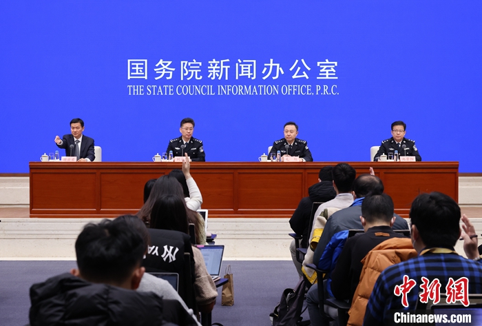 1月11日,中國國務院新聞辦公室在北京舉行新聞發(fā)布會,國家移民管理局副局長劉海濤、外國人管理司司長毛旭、邊防檢查管理司司長池景陽介紹便利外籍人員來華5項措施有關情況,并答記者問。 中新社記者 楊可佳 攝