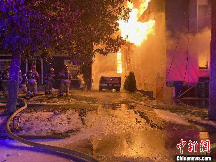 當(dāng)?shù)貢r(shí)間1月14日,消防員試圖撲滅發(fā)生在美國(guó)俄勒岡州波特蘭東北部一座教堂的大火。(波特蘭消防救援部門供圖)