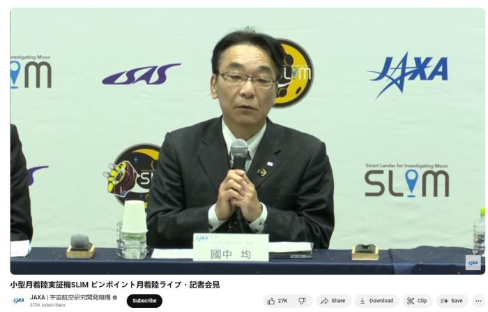 JAXA宇宙科學(xué)研究所所長國中均在新聞發(fā)布會上講話。圖片來源:日本宇宙航空研究開發(fā)機(jī)構(gòu)(JAXA)直播截圖