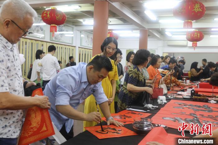 當?shù)貢r間28日上午,這些書法愛好者齊聚印尼書畫學院,參加“‘龍’福齊天——甲辰龍年新春大團拜”活動?;顒佑捎∧釙覅f(xié)會和印尼書畫學院聯(lián)合舉辦。