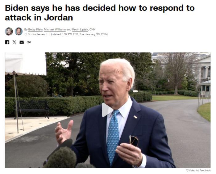 美媒:拜登稱(chēng)已決定如何應(yīng)對(duì)約旦美軍基地遇襲