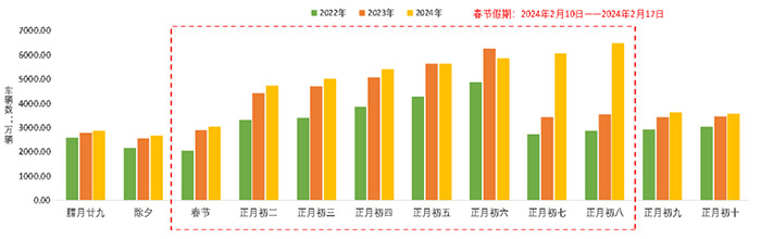 報(bào)告指出,2024年春節(jié)假期從2月10日(正月初一)到2月17日(正月初八),共計(jì)8天,7座以下(含7座)小型客車(chē)免費(fèi)通行時(shí)間為2月9日0時(shí)至2月17日24時(shí),共計(jì)9天。