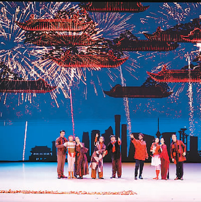 舞臺上,紅彤彤的燈籠、喜慶的春聯(lián)、熱鬧的廟會奏響了中國農(nóng)歷新年的序曲;“團團”和“圓圓”家的年夜飯彰顯了中國禮儀之邦的待客之道、尊老愛幼的傳統(tǒng)美德,一張全家福更傳達了中國人對親情的重視和對團圓的向往;“胡桃夾子”大戰(zhàn)“年”獸,則充滿童趣地演繹了“過年”的傳說;而當寓意吉祥的仙鶴在蒼勁的松樹下迎著朝陽翩翩起舞,西方芭蕾藝術(shù)在中國文化意象中煥發(fā)出了美妙的東方神韻;扇子舞、絲綢舞、風(fēng)箏舞、陀螺舞……一個個頗具中國元素的慶典場面讓阿聯(lián)酋觀眾游歷在瑰麗多姿的中國傳統(tǒng)文化中。