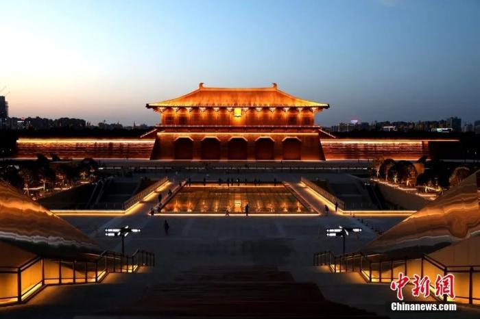 圖為西安大明宮國家遺址公園夜景。 張遠(yuǎn) 攝