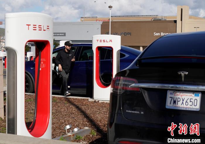 當(dāng)?shù)貢r(shí)間2月2日,車(chē)主在位于美國(guó)加州圣布魯諾一處停車(chē)場(chǎng)給特斯拉汽車(chē)充電?!≈行律缬浾?劉關(guān)關(guān) 攝