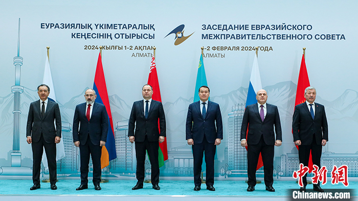 當(dāng)?shù)貢r(shí)間2月2日,哈薩克斯坦阿拉木圖,歐亞政府間理事會會議舉行。 中新社發(fā) 哈薩克斯坦總理府網(wǎng)站供圖