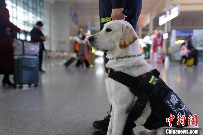 “見習(xí)”警犬“斯諾”的首個(gè)春運(yùn):抵御美食誘惑方“過關(guān)”