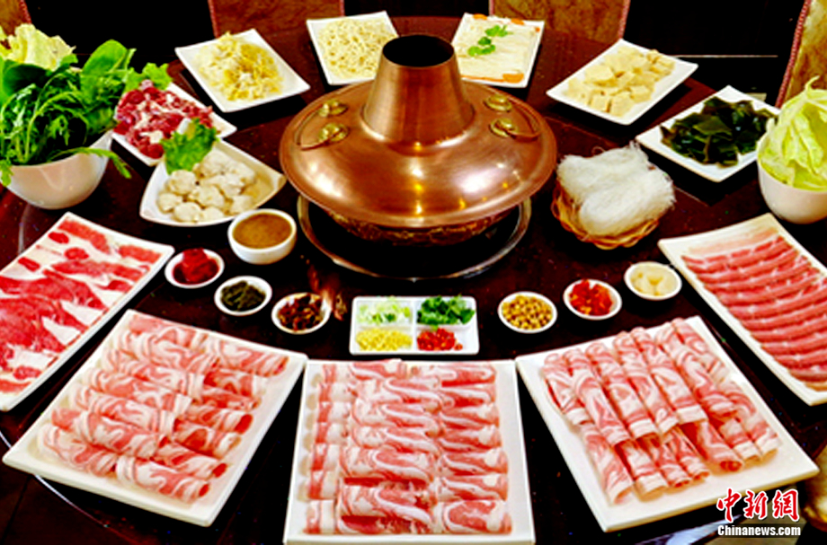 銅鍋用木炭燒熱,雞湯作為底湯,