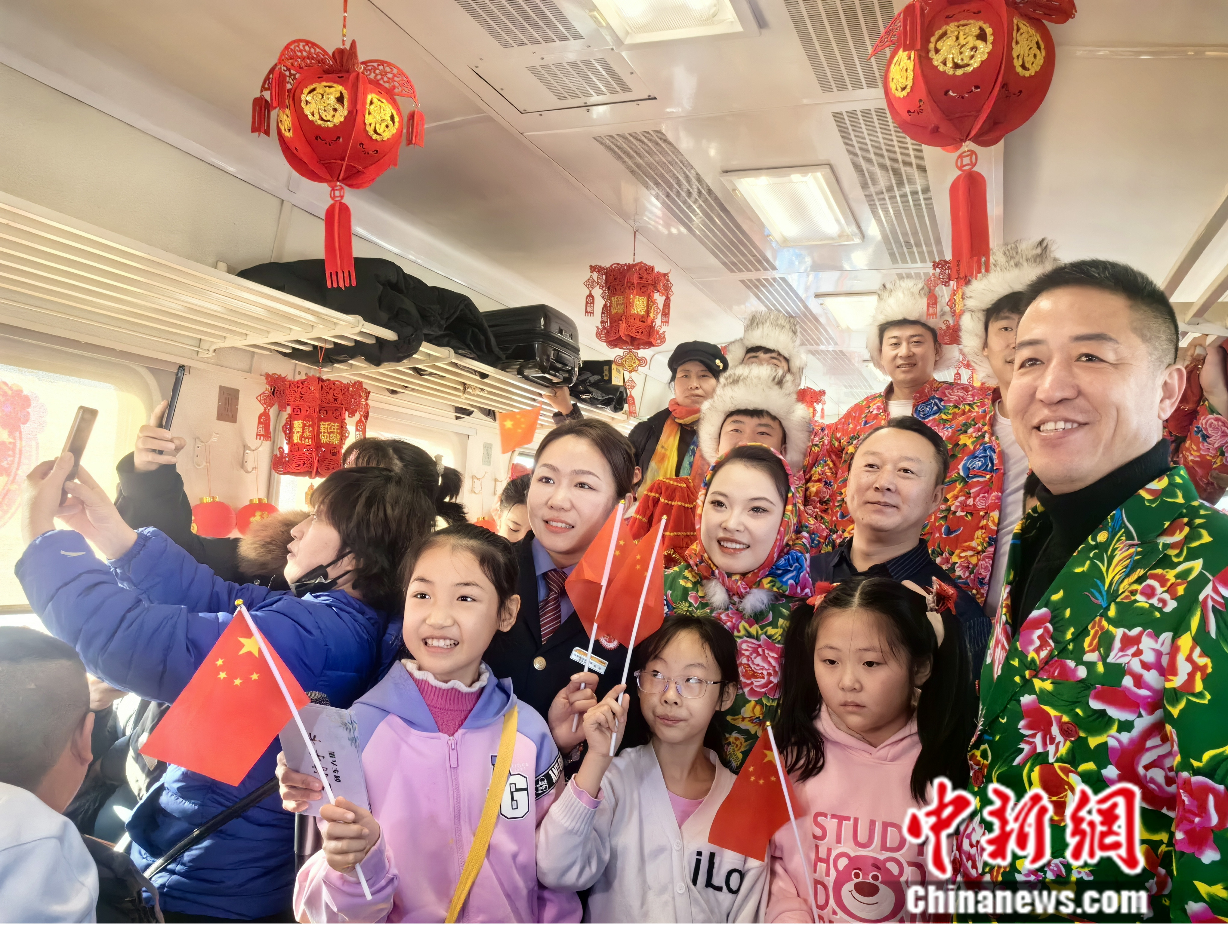 在山東,春節(jié)前,山東“黃河大集”也登陸了山東環(huán)線列車。國鐵濟南局把富有創(chuàng)意、接地氣的賀年會產品布展到火車上,在行駛的列車上舉辦多彩的民俗文化活動,讓春運旅客在車廂里趕上了“大集”。