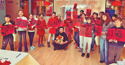 在招待會上,來賓們在書法展臺學(xué)寫“福”字和春聯(lián),在版畫展臺體驗中國雕版印刷技藝,體驗中國非遺和年俗互動項目,了解中國傳統(tǒng)文化的悠久歷史和傳承發(fā)展等。