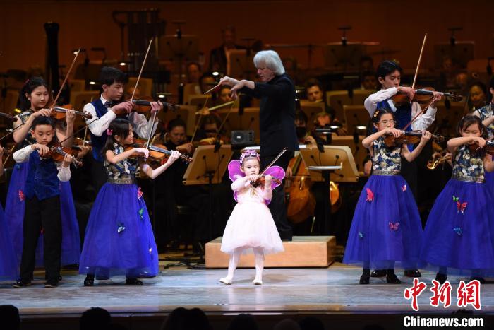 當(dāng)?shù)貢r(shí)間2月10日晚,美國太平洋交響樂團(tuán)與橙郡音樂與舞蹈藝術(shù)中心的孩子們合作演奏小提琴協(xié)奏曲《梁?!贰!≈行律缬浾? 張朔 攝