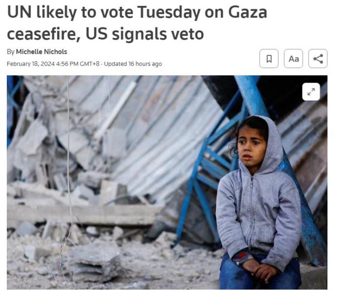 中新網(wǎng)2月19日電 綜合報(bào)道,外交人士表示,聯(lián)合國(guó)安理會(huì)或?qū)⒃诋?dāng)?shù)貢r(shí)間20日就阿爾及利亞提出的加沙人道?;饹Q議進(jìn)行投票,但美國(guó)暗示將在該投票中實(shí)施一票否決。