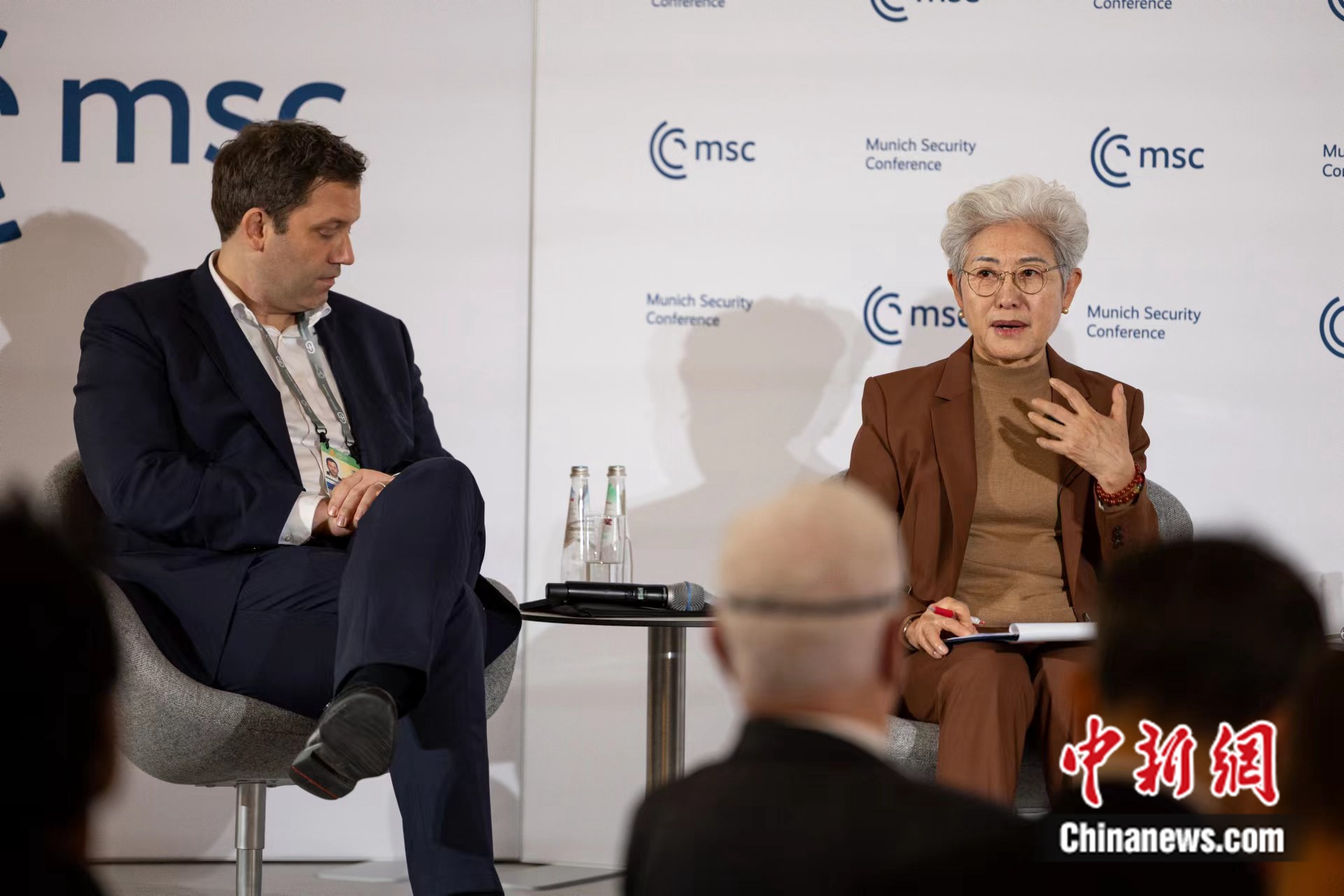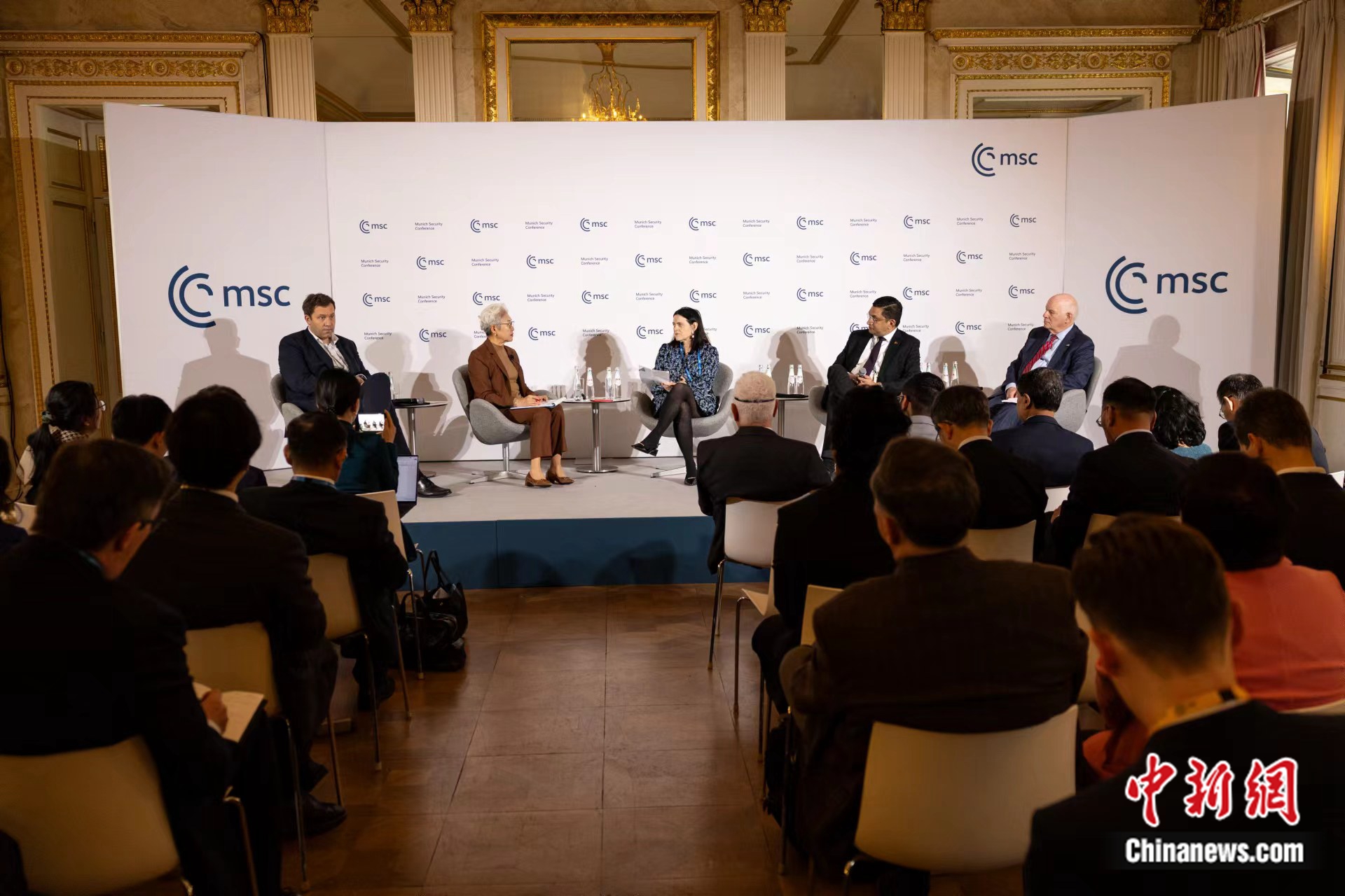在第60屆慕尼黑安全會議期間,中國外交部原副部長傅瑩17日參加“增強防御:印太地區(qū)安全”論壇。圖片來源: 慕尼黑安全會議官方攝影