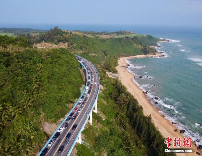 圖為航拍海南環(huán)島旅游公路萬寧山欽灣段,沿途秀麗風景吸引眾多游客自駕前來游玩。陳英清攝