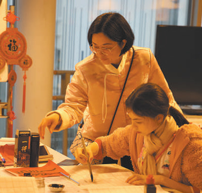 2月3日,在法國(guó)巴黎中國(guó)文化中心“走進(jìn)中心過大年”活動(dòng)中,學(xué)員體驗(yàn)中國(guó)書法。