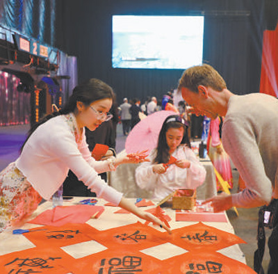 “龍”“?!薄按骸薄跁艏堈古_(tái)上,一幅幅書法作品傳遞著節(jié)慶的氛圍。當(dāng)?shù)鼐用窭獱柲闷鹨粡垺案!弊郑蚬ぷ魅藛T詢問寓意。拉莫爾就職的企業(yè)與中國(guó)有頻繁的業(yè)務(wù)往來,他曾兩次到訪中國(guó)。他說:“中國(guó)文化博大精深,中國(guó)人有著強(qiáng)烈的文化認(rèn)同感。希望多多舉辦這樣的活動(dòng),讓更多人了解中國(guó)文化?!?/p>