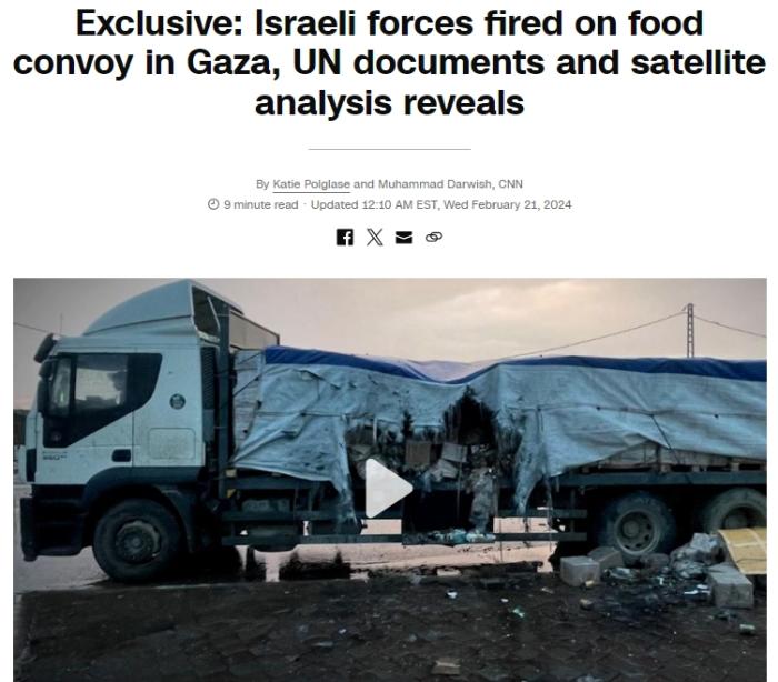 中新網(wǎng)2月21日電 美國有線電視新聞網(wǎng)(CNN)2月21日根據(jù)聯(lián)合國文件報道稱,以色列軍隊2月5日曾向加沙地帶中部一支聯(lián)合國運糧車隊開火,并最終阻止了車隊繼續(xù)前進(jìn)。