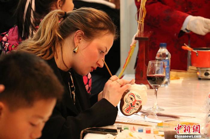 表演結(jié)束后,主辦方還準(zhǔn)備了迷你廟會體驗活動,畫臉譜、吹糖人等傳統(tǒng)民俗活動吸引了眾多法國青少年圍觀?!拔覑壑袊?!”他們表示,雖然來到中國的時間尚短,但已經(jīng)感受到中國文化的魅力。