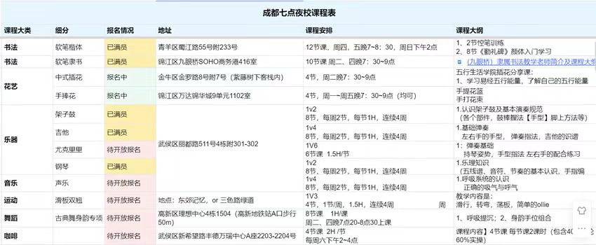 五花八門的副業(yè)她都嘗試過,目前比較穩(wěn)定、收入占比最大的是去年11月開始做的夜校。那段時間,年輕人上夜校的話題火爆,她發(fā)現(xiàn)成都還沒有,于是第一個在成都建起夜校社群,以組團(tuán)的人數(shù)優(yōu)勢去找商家談低價課,類似于興趣班的拼多多,目前社區(qū)差不多有5000人。