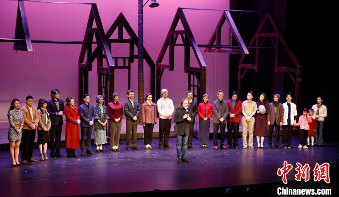 《寶島一村》專屬版第100場(chǎng)演出謝幕前,賴聲川攜演員向臺(tái)下觀眾鞠躬致意。(受訪者供圖)