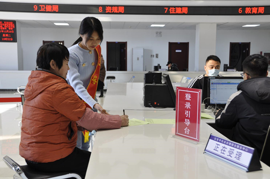 遷安市社會治理綜合服務(wù)中心工作人員引導(dǎo)群眾填表。 商立超攝
