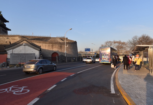 德勝門公交站改造后增加非機動車道。北京市交通委供圖
