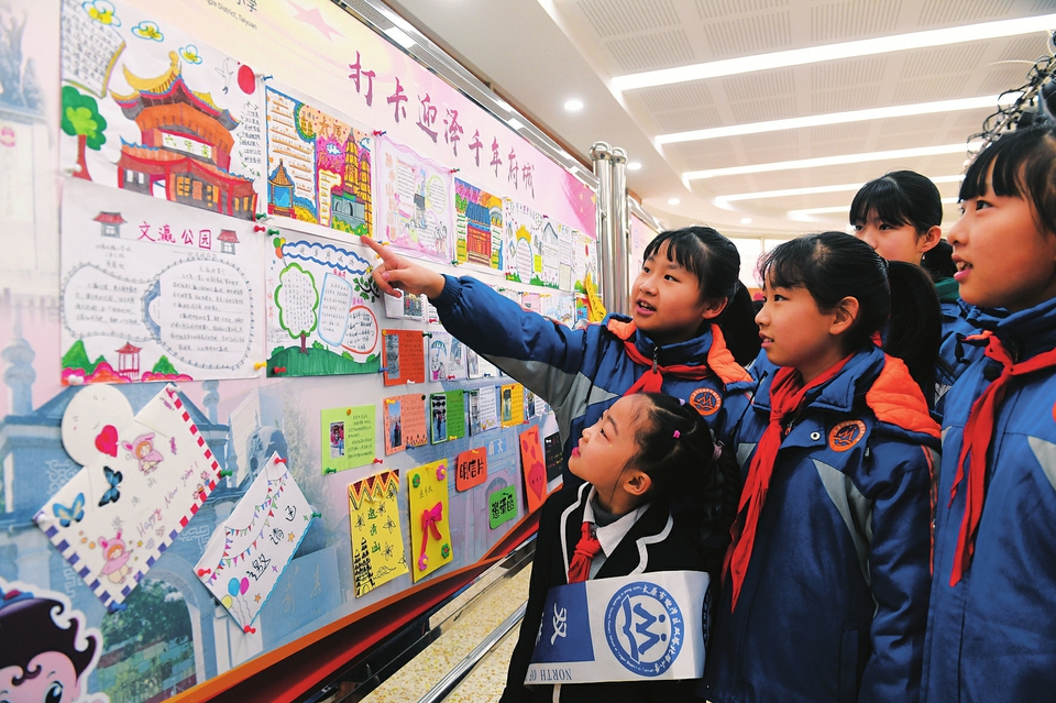 1月10日,省城雙塔北路小學二年級師生利用迎澤區(qū)的文旅資源,在學期末組織開展“府城游”綜合素養(yǎng)大比拼活動,讓孩子們領略精彩自信的“人文迎澤”,傳承紅色基因,感受歷史文化。(記者王瑞瑞攝)