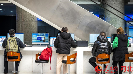 在曹妃甸區(qū)政務(wù)中心大廳,前來辦理審批手續(xù)的相關(guān)人員正在自助打印區(qū)打印文件。 季春天攝