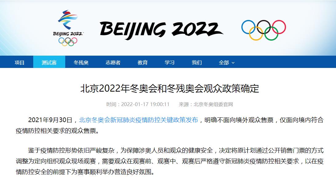 北京2022年冬奧會(huì)和冬殘奧會(huì)觀眾政策確定
