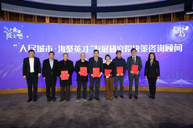 會(huì)上,人民城市海聚英才發(fā)展研究院舉行了決策咨詢顧問聘任儀式。市委組織部人才處處長譚樸珍、楊浦區(qū)委書記謝堅(jiān)鋼為金力、陳杰、汪品先、莊松林、黃崇祺、褚君浩院士頒發(fā)聘書;楊浦區(qū)人大常委會(huì)主任程繡明、區(qū)委副書記周海鷹為林元培、穆穆、常青、李兆申、徐祖信、李俊院士頒發(fā)聘書。