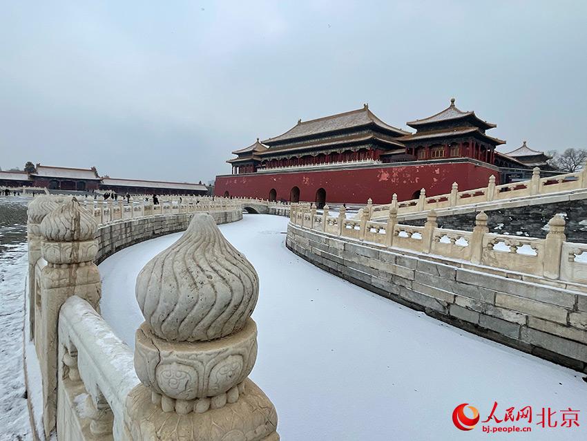 北京迎2022年初雪,故宮覆蓋白雪更顯魅力。人民網(wǎng) 尹星云攝