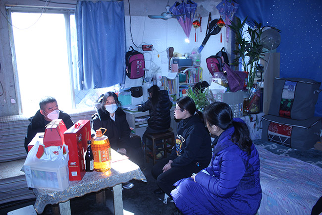 2022年1月24日,年關(guān)將至,氣溫驟降。濟(jì)南市中區(qū)人民法院少審?fù)サ姆ü賯冊(cè)诶罱ラL(zhǎng)的帶領(lǐng)下,踩著厚厚的積雪,提著滿滿的春節(jié)年貨和生活、學(xué)習(xí)用品,來(lái)到轄區(qū)內(nèi)一間不足20平方米的簡(jiǎn)易出租房?jī)?nèi),看望了從大山深處來(lái)濟(jì)南生活的秦女士(化名)和她的三個(gè)女兒。 6年里的每個(gè)春節(jié)前夕,他們都會(huì)來(lái)看望這個(gè)因“案”結(jié)緣,心中時(shí)常牽掛的小姐妹家。