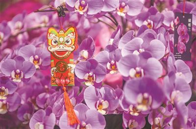 年宵花上掛著虎年紅包。