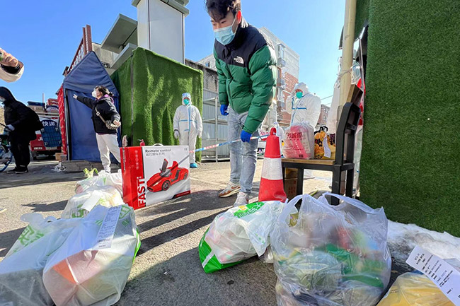 為保障居民買(mǎi)菜用餐等正常生活,院內(nèi)居民可以通過(guò)外賣(mài)快遞采購(gòu)物資,也可以通過(guò)社區(qū)代為采購(gòu)。封控區(qū)居民通過(guò)快遞外賣(mài)的購(gòu)買(mǎi)物品,會(huì)在消殺后,由工作人員送至門(mén)口。對(duì)不會(huì)使用網(wǎng)絡(luò)購(gòu)物的居民,社區(qū)提供了配餐和送貨上門(mén)服務(wù)。