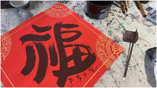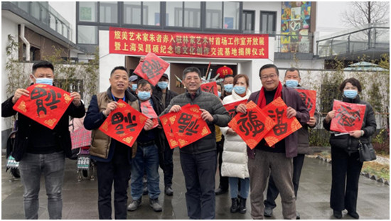 現(xiàn)場,朱者赤還即興提筆,墨躍紅紙,以倒序筆畫寫下福字,以此寄予“福到了”的新年祝福。作為入駐林家藝術(shù)村的第一批自由職業(yè)藝術(shù)家,朱者赤認(rèn)為,鄉(xiāng)村的自然恬淡能為藝術(shù)家的創(chuàng)作帶來許多靈感,而藝術(shù)賦能也會對美麗鄉(xiāng)村建設(shè)會起到推進(jìn)作用,他希望自己能在其中發(fā)揮作用,在不斷創(chuàng)作創(chuàng)新的同時,讓更多藝術(shù)美走進(jìn)鄉(xiāng)村中去。