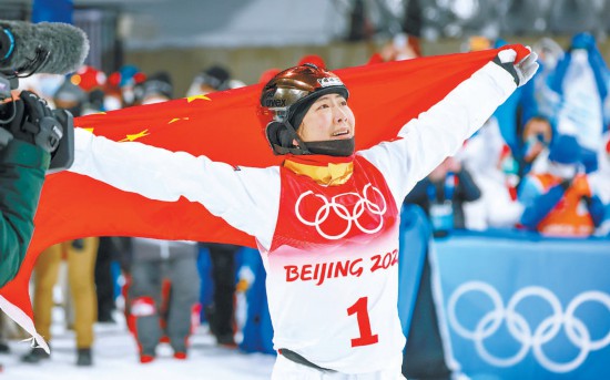 北京冬奧會自由式滑雪女子空中技巧決賽最終輪一跳定勝負,中國隊徐夢桃奪得金牌。 本報記者 潘之望攝