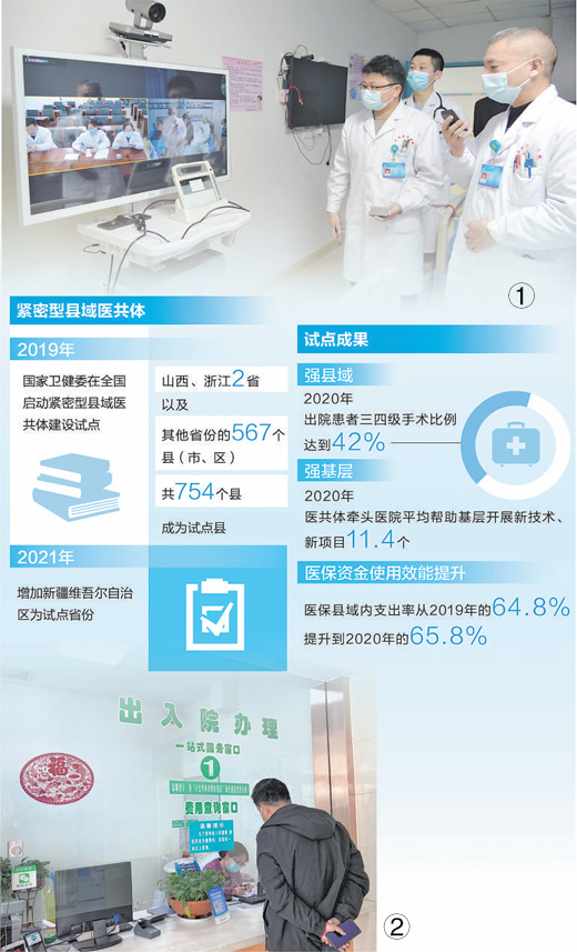 近日,國家衛(wèi)健委印發(fā)《醫(yī)療機(jī)構(gòu)設(shè)置規(guī)劃指導(dǎo)原則(2021—2025年)》,要求按照縣鄉(xiāng)一體化、鄉(xiāng)村一體化原則積極發(fā)展緊密型縣域醫(yī)共體。2019年,國家衛(wèi)健委在全國啟動(dòng)緊密型縣域醫(yī)共體建設(shè)試點(diǎn)。目前全國已有535個(gè)縣建成縣、鄉(xiāng)、村三級聯(lián)動(dòng)的緊密型縣域醫(yī)共體,試點(diǎn)縣醫(yī)療服務(wù)效能提高,縣域內(nèi)就診率超90%。