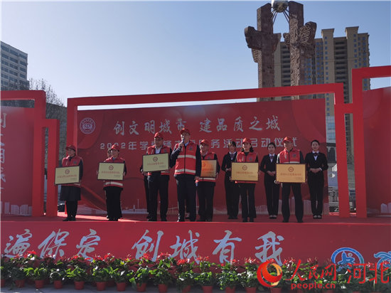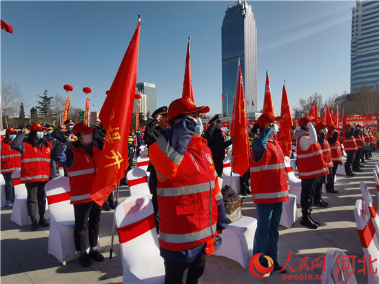 保定市委副書記商黎兵為志愿服務(wù)分隊授牌并宣布活動啟動。 張皓攝