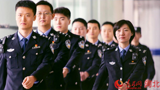 人民網石家莊3月8日電 “準備出發(fā)……”一連串清脆響亮的聲音發(fā)出,一排手持警棍和盾牌,全身武裝的公安干警,行動迅速,壓人氣息。