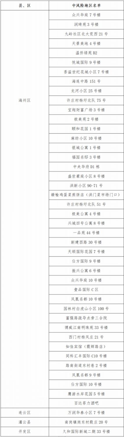 連云港已有45個中風(fēng)險地區(qū) 分布在4個縣區(qū)