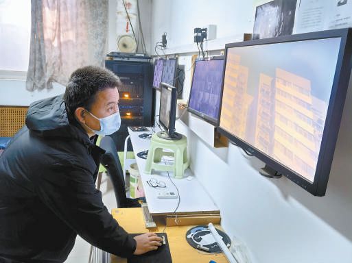 在物業(yè)公司的中控室里,記者看到墻上安裝著十幾個顯示屏。通過顯示屏可以清晰地看到每棟樓體外邊的情況。工作人員操控監(jiān)控探頭的角度,可以看到整棟樓的每一個角落。