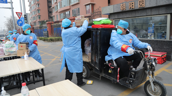 北京朝陽園小區(qū):一線防疫人員當(dāng)臨時"騎手" 保障居民生活