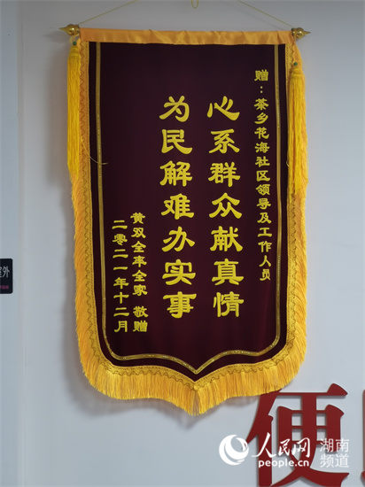 居民贈送的錦旗。人民網(wǎng) 李芳森攝