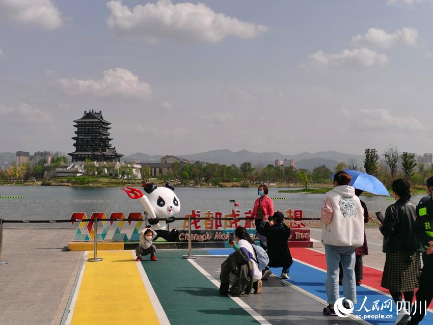 “2022,成都成就夢想!”一個大熊貓手持大運(yùn)會火炬的雕塑造型旁,寫著這句話,吸引了不少游人在這里打卡拍照。2022年,成都成就的不只是大運(yùn)會運(yùn)動員們的夢想,還有更多熱愛生活、熱愛體育的人的夢想。